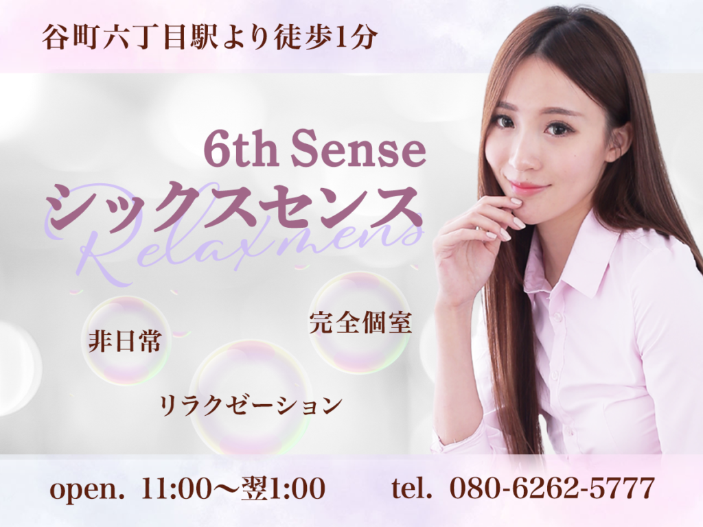 大阪府天王寺エリアの「シックスセンス」は、谷町六丁目駅から徒歩1分の好立地にあるメンズエステサロンです。11:00から翌1:00まで営業しており、お仕事帰りでもゆっくりとご利用いただけます。経験豊富な美人セラピストが、心を込めた丁寧なオイルマッサージで日頃のお疲れを癒します。当店独自の手技と手法により、喧騒を忘れて特別なリラクゼーション時間をお過ごしいただけます。全身の疲れを取り除く本格的な施術で、心身ともにリフレッシュしていただける癒しの空間です。