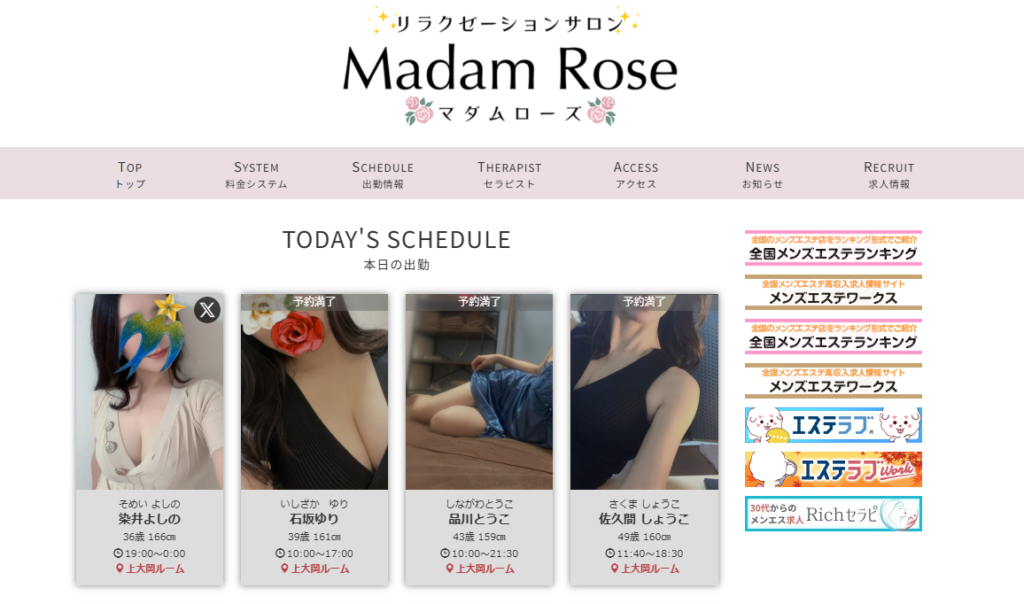 横浜・関内エリアにある「マダムローズ 横浜ルーム」は、オプションなしのお手頃価格でご利用いただけるリラクゼーションエステサロンです。経験豊富な女性セラピストによる心身を癒すオイルマッサージで、日頃の疲れやストレスを解消できます。営業時間は10:00~23:00と長時間対応しており、お忙しい方でもご都合に合わせてご利用いただけます。90分14,000円からのリーズナブルな料金設定で、本格的な癒しの時間をお過ごしください。ご予約はお電話またはLINEにて承っております。