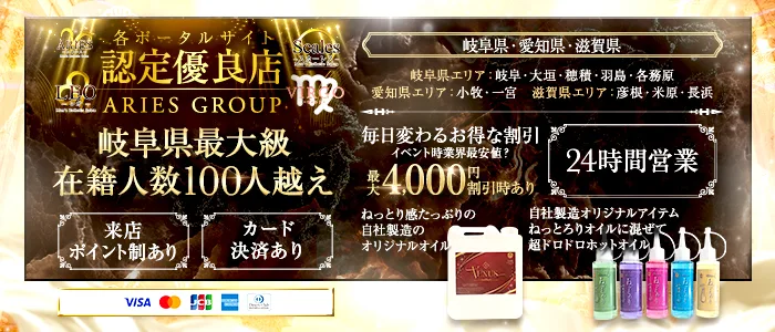 岐阜市にあるメンズエステサロン「ARIES(エリース)」は、岐阜駅から徒歩わずか7分の好立地にございます。朝9時から翌3時まで営業しており、お忙しい方にも柔軟に対応いたします。経験豊富なセラピストによる丁寧なオイルマッサージで、日頃の疲れやストレスを優しく癒します。落ち着いた空間で上質なリラクゼーションタイムをお過ごしいただけます。心身ともにリフレッシュしたい男性の皆様に、極上の癒しのひとときをご提供いたします。