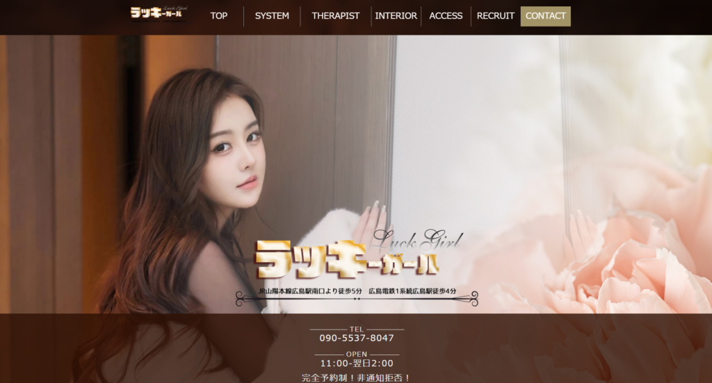 広島駅南口から徒歩5分の好立地にあるメンズエステ「ラッキーガール」は、日々の疲労とストレスを癒すリラクゼーションサロンです。香り豊かなオイルを使用したリンパマッサージで、心身に溜まった疲れをしっかりとほぐします。美しいセラピストとの会話を楽しみながら、温かい人肌の温もりに包まれてリラックスできる贅沢な時間をお過ごしいただけます。11時から翌2時まで営業しており、完全予約制でプライベートな空間を提供いたします。